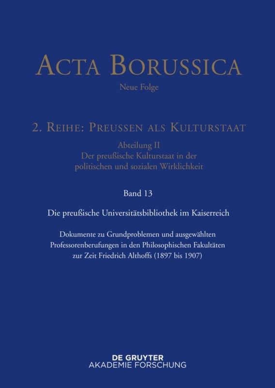 Die Ära Friedrich Althoffs (1882–1907) galt im Rückblick vielfach als „goldene“ Epoche der Universitäten in Preußen. Zweifellos arbeitete Althoff emsig und förderte die Universitäten; er nahm an ihn herangetragene Anstöße auf, argumentierte geschickt gegenüber dem Finanzministerium und redete ebenso sachkundig wie humorvoll im Landtag. Althoff stand aber auch in der Tradition preußischer Wissenschaftsförderung und profitierte von wachsenden Staatseinnahmen sowie generell von der Machtposition der Ministerialbürokratie im konstitutionellen Regierungssystem. Althoffs im Wortsinne national-liberale Wissenschaftspolitik konnte beachtliche Leistungen vorweisen, wenngleich nicht jeder Erfolg ihm allein zuzuschreiben ist und er auch zeittypischen Tendenzen verhaftet blieb. In den Dokumenten zu ausgewählten Professorenberufungen an zehn Philosophischen Fakultäten Preußens 1897–1907 treten zudem weithin Problemfelder vom Antisemitismus über die Schwierigkeiten kleinerer Universitäten bei Ausstattung oder Professorengewinnung bis hin zur untergeordneten Stellung der Nichtordinarien zu Tage.