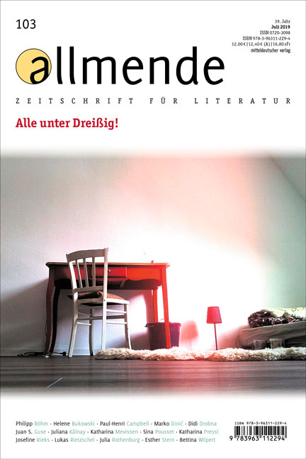 Mit Beiträgen von Philipp Böhm, Helene Bukowski, Paul-Henri Campbell, Marko Dinić, Didi Drobna, Juan S. Guse, Katharina Mevissen, Sina Pousset, Katharina Pressl, Josefine Rieks, Lukas Rietzschel, Julia Rothenburg, Esther Stern, Bettina Wilbert und anderen.