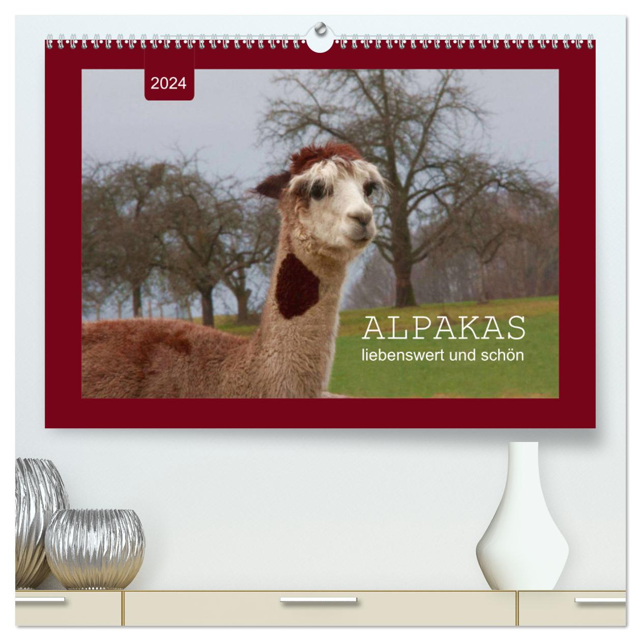 Alpakas – liebenswert und schön (hochwertiger Premium Wandkalender 2024 DIN A2 quer), Kunstdruck in Hochglanz