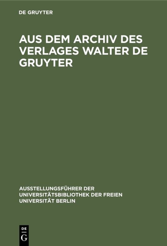 Aus dem Archiv des Verlages Walter de Gruyter