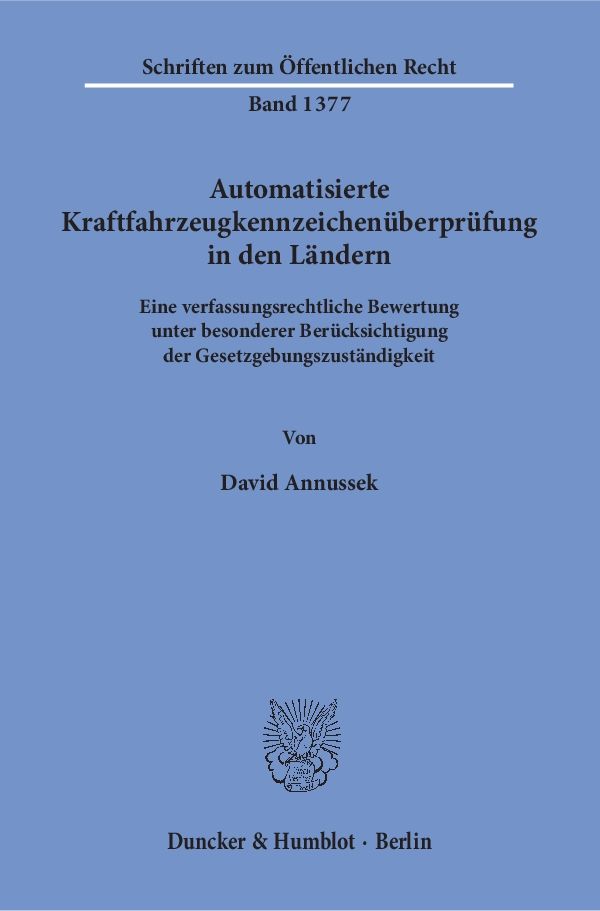 Die Verfassungsmäßigkeit landesrechtlicher Ermächtigungsgrundlagen zur automatisierten Kraftfahrzeugkennzeichenüberprüfung ist stark umstritten. Die Arbeit untersucht die insoweit offenen Fragestellungen, wobei die Frage der Gesetzgebungszuständigkeit der Länder den Schwerpunkt bildet. Im ersten Teil der Arbeit werden zunächst die Funktionsweise und der technische Ablauf der automatisierten Kraftfahrzeugkennzeichenüberprüfung, polizeiliche Einsatzmöglichkeiten sowie die Entwicklung der Rechtslage und der Einsatzpraxis in den Ländern und im Bund detailliert dargestellt. Im zweiten Teil erfolgt eine ausführliche verfassungsrechtliche Bewertung. Deren zentrales Ergebnis ist, dass die Länder unter dem Gesichtspunkt der Gesetzgebungszuständigkeit über einen weiten Gestaltungsspielraum beim Erlass von Regelungen zur automatisierten Kraftfahrzeugkennzeichenüberprüfung verfügen, da die meisten Argumente gegen eine kompetenzrechtliche Zuordnung zum Bereich der allgemeinen Gefahrenabwehr nicht überzeugen und überdies auf dem Gebiet der konkurrierenden Gesetzgebung keine Sperrwirkung zulasten der Länder besteht.