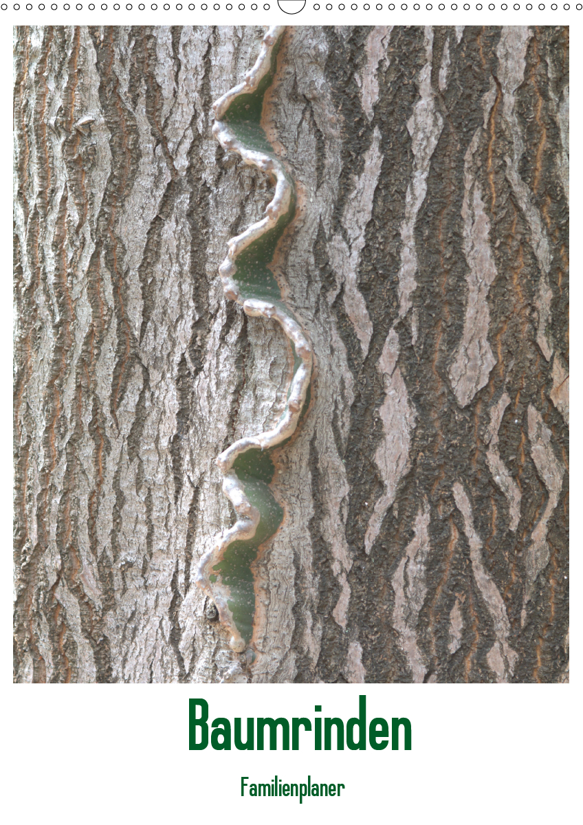 Die Fotografin Anneli Hegerfeld-Reckert hat in faszinierenden Bildern die Unterschiedlichkeit einzelner Baumrinden für diesen Familienplaner abgelichtet.Dabei zeigt sich Mutter Natur in der Vielfältigkeit dieser Baumhäute, die sowohl dem Schutz als auch der Versorgung der Bäume dienen.