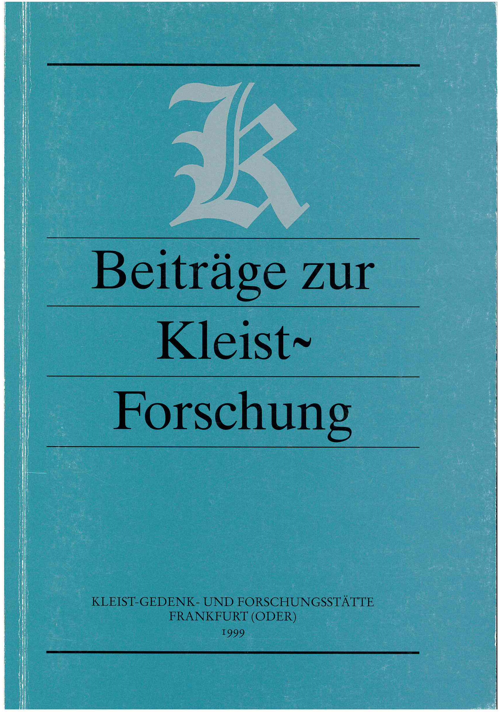 Den 13. Band der Beiträge zur Kleist-Forschung eröffnet die Rede Christoph Heins, die er anläßlich der 8. Kleistfesttage am 16. Oktober 1998 und unter dem Titel „Von den unabdingbaren Voraussetzungen beim Kleist-Lesen“ hielt. Die folgenden Beiträge thematisieren beispielsweise Kleists Reise nach Würzburg, seine sogenannte Kantkrise oder Lebensspuren zu Kleists Freund Ludwig von Brockes; der Aufsatz des Literaturwissenschaftlers Volker Nölle beschäftigt sich mit Kleists „gegenklassischer“ Antikerezeption. Zwei Buch- und eine Theaterrezension runden den Band, der auch eine Bibliographie des ehemaligen Direktors des Kleist-Museums, Rudolf Loch, enthält, ab.