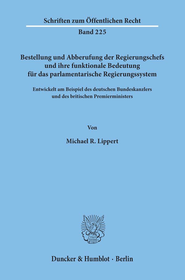 Bestellung und Abberufung der Regierungschefs und ihre funktionale Bedeutung für das parlamentarische Regierungssystem. online kaufen