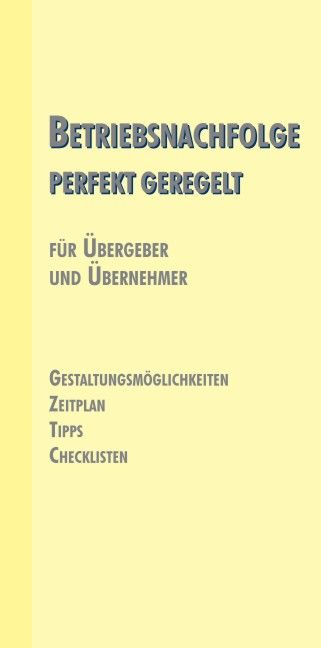 Dieser praktische Ratgeber informiert kompakt und übersichtlich über die verschiedenen Gestaltungsmöglichkeiten der Betriebsnachfolge, stellt einen optimalen Fahrplan auf und gibt wichtige Informationen zu Finanzierung und Förderung.