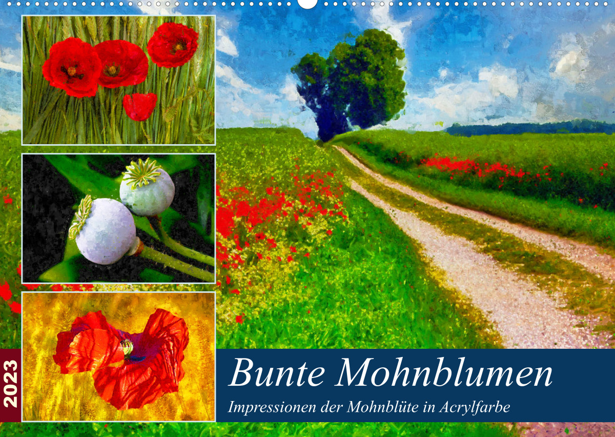 Bunte Mohnblumen – Impressionen der Mohnblüte in Acrylfarbe (Wandkalender 2023 DIN A2 quer)