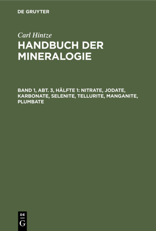 Carl Hintze: Handbuch der Mineralogie / Nitrate, Jodate, Karbonate, Selenite, Tellurite, Manganite, Plumbate