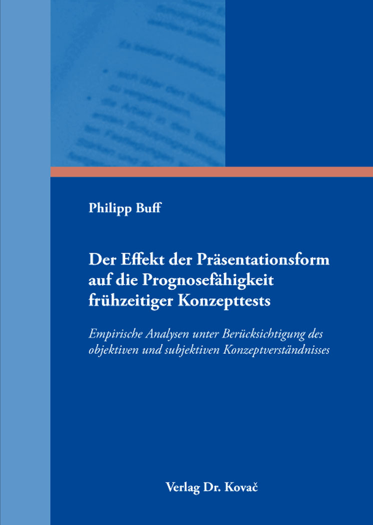 Die Kenntnis der Kundenpräferenzen und deren Berücksichtigung in der Produktentwicklung bilden entscheidende Faktoren für den Erfolg eines neuen Produktes. Die frühzeitige Erhebung dieser Präferenzen gestaltet sich jedoch schwierig, da zu Beginn des Entwicklungsprozesses noch keine realen Prototypen verfügbar sind. Vor diesem Hintergrund evaluiert Philipp Buff in drei empirischen Analysen die Eignung nicht-realer Präsentationsformen (Text, Animation und VR) für den Einsatz in der frühzeitigen Präferenzmessung. Besondere Beachtung erfährt dabei das Konzeptverständnis potenzieller Kunden, das im Zuge der Präferenzbildung für innovative Produktkonzepte von zentraler Bedeutung ist.
