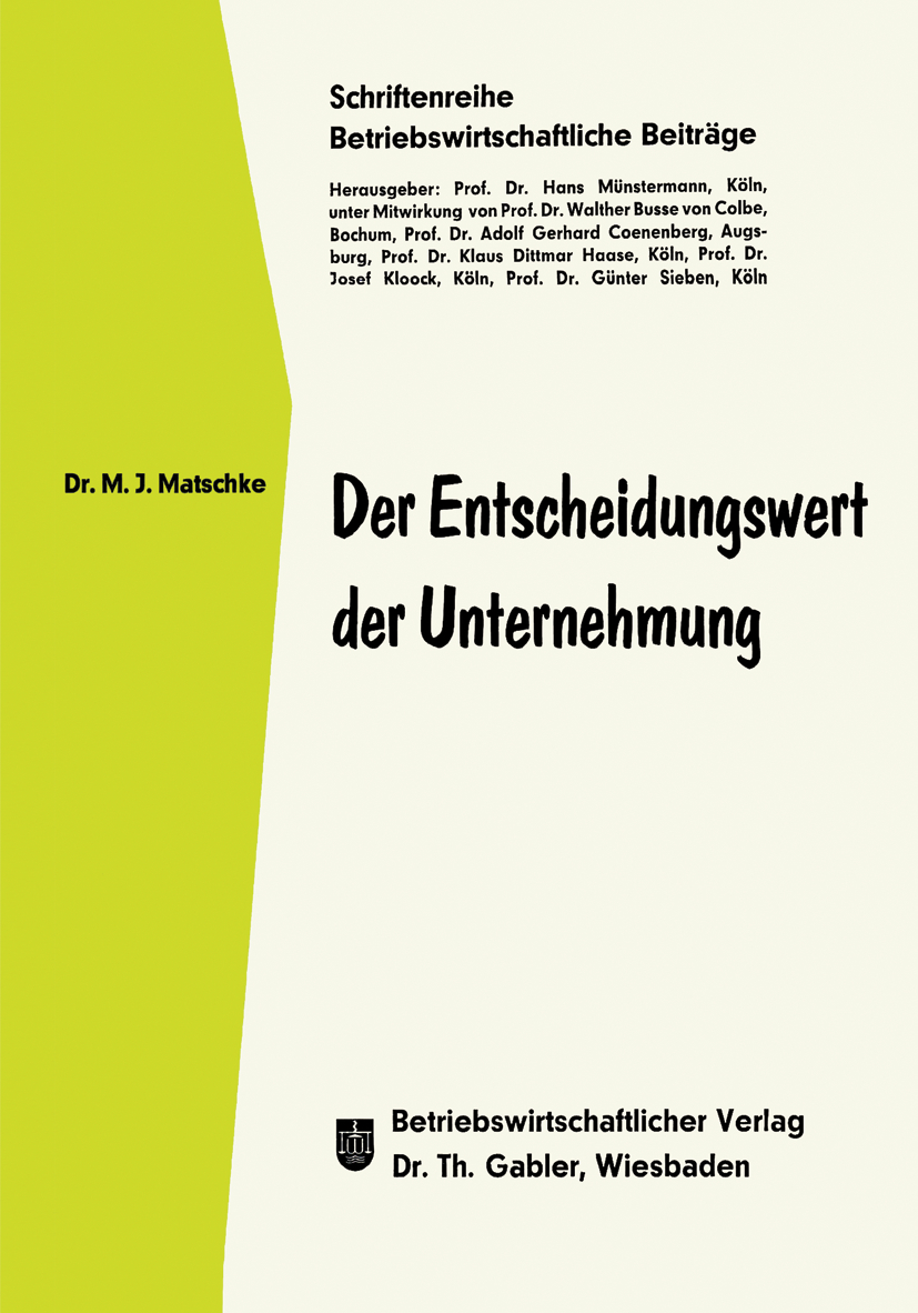 Die Publikation Der Entscheidungswert der Unternehmung - Inauguraldissertation zur Erlangung des Doktorgrades der Wirtschafts- und Sozialwissenschaftlichen Fakultät der Universität zu Köln von Manfred Jürgen Matschke ist bei Betriebswirtschaftlicher Verlag Gabler erschienen. Die Publikation ist mit folgenden Schlagwörtern verschlagwortet: Betriebswirtschaft, Betriebswirtschaftliche Forschung, Betriebswirtschaftslehre (BWL), Bewertung, Entscheidungstheorie, Finanzierung, Fusion, Investition, Kalkulation, Planung, Unternehmensbewertung, Unternehmensforschung, Unternehmer, Wettbewerb, Wirtschaft. Weitere Bücher, Themenseiten, Autoren und Verlage finden Sie hier: https://buch-findr.de/sitemap_index.xml . Auf Buch FindR finden Sie eine umfassendsten Bücher und Publikationlisten im Internet. Sie können die Bücher und Publikationen direkt bestellen. Ferner bieten wir ein umfassendes Verzeichnis aller Verlagsanschriften inkl. Email und Telefonnummer und Adressen. Die Publikation kostet in Deutschland 54.99 EUR und in Österreich 56.53 EUR Für Informationen zum Angebot von Buch FindR nehmen Sie gerne mit uns Kontakt auf!