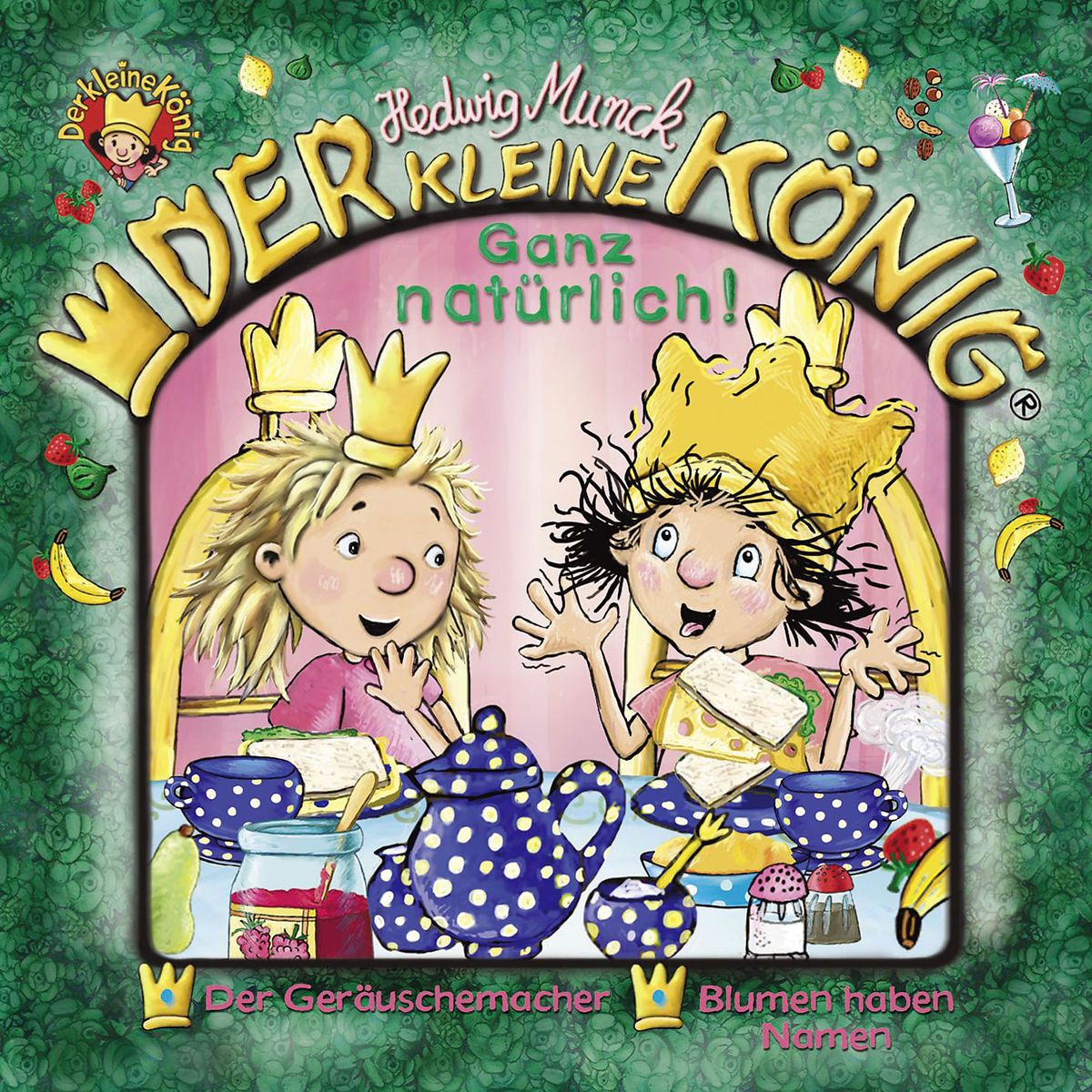 Der kleine König ist der beste Freund des Sandmännchens. Bei ihm ist immer etwas los, dafür sorgen schon die Katze Tiger, das Pferd Grete, der Hund Wuff, das Eichhörnchen Buschel und der Vogel Pieps. Bevor der kleine König eine gute Nacht wünscht, sind stets viele lustige kleine Abenteuer zu bestehen. Denn der kleine König ist nicht immer artig und manchmal auch ganz schön tollpatschig. Er gerät immer wieder in die überraschendsten Situationen und meistert die Probleme des Alltags immer wieder zwar mit viel Mühe, noch mehr Kreativität und einer herrlich überbordenden Phantasie. FOLGE 31: GANZ NATÜRLICH! (inkl. zwei königlichen Liedern) Im kleinen Königreich geht es sehr natürlich zu. Im Schlossgarten reifen leckere Früchte und viele Blumenarten sorgen für einen herrlichen Duft. Im Schloss sind natürliche Gerüche und menschliche Töne allerdings nicht immer so erfreulich. Vor allem, wenn der Bauch gerade dann grummelt, wenn man Besuch hat! 1. Der Geräuschemacher – Was aus dem kleinen König alles für Töne herauskommen! Die kleine Prinzessin ist anfangs noch sehr geduldig, aber irgendwann wird es ihr zu viel. Denn der kleine König ist nicht einmal im Schlaf wirklich still! 2. Blumen haben Namen – Die Blumen im Königsgarten sind alles Freunde des kleinen Königs. Deshalb sollen nicht alle den gleichen Namen tragen, wie Tulpe oder Nelke. Nein, er tauft sie alle einzeln – und das bringt ihn schnell in Schwierigkeiten. Extra: Mit zwei königlichen Liedern! Ich zieh mich ganz alleine an und Mein Blümchen heißt Sabine Spieldauer: ca. 40 Minuten Altersempfehlung: ab 03 Jahren