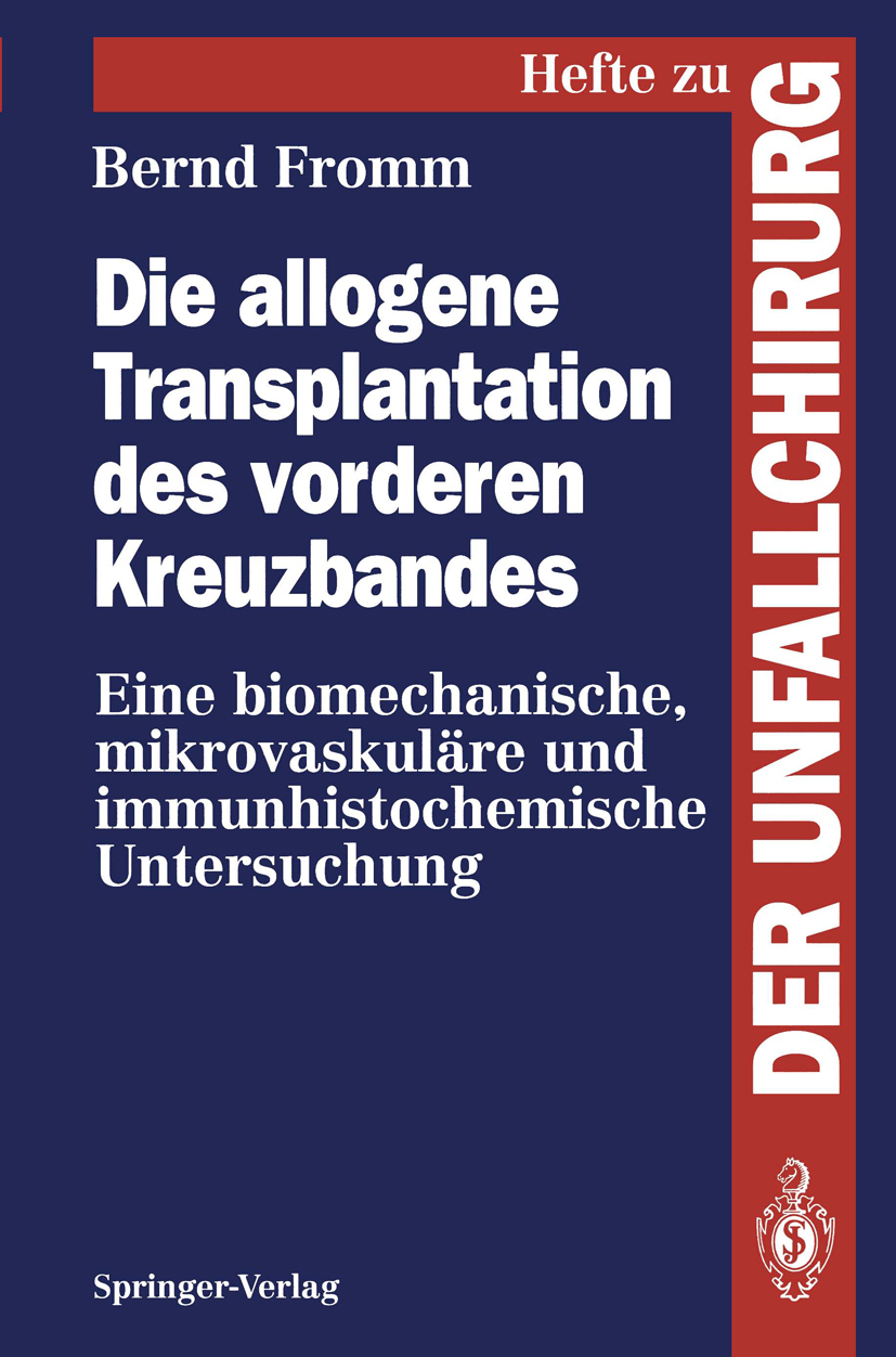 Die Publikation Die allogene Transplantation des vorderen Kreuzbandes - Eine biomechanische, mikrovaskuläre und immunhistochemische Untersuchung von Bernd Fromm ist bei Springer Berlin erschienen. Die Publikation ist mit folgenden Schlagwörtern verschlagwortet: Kreuzband, Kreuzbandrekonstruktion, Trauma Surgery, vorderes Kreuzband. Weitere Bücher, Themenseiten, Autoren und Verlage finden Sie hier: https://buch-findr.de/sitemap_index.xml . Auf Buch FindR finden Sie eine umfassendsten Bücher und Publikationlisten im Internet. Sie können die Bücher und Publikationen direkt bestellen. Ferner bieten wir ein umfassendes Verzeichnis aller Verlagsanschriften inkl. Email und Telefonnummer und Adressen. Die Publikation kostet in Deutschland 54.99 EUR und in Österreich 56.53 EUR Für Informationen zum Angebot von Buch FindR nehmen Sie gerne mit uns Kontakt auf!