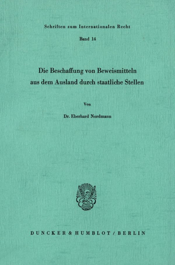 Die Publikation Die Beschaffung von Beweismitteln aus dem Ausland durch staatliche Stellen. von Eberhard Nordmann ist bei Duncker & Humblot erschienen. Die Publikation ist mit folgenden Schlagwörtern verschlagwortet: Verwaltungsgeographie, Voelkerrecht. Weitere Bücher, Themenseiten, Autoren und Verlage finden Sie hier: https://buch-findr.de/sitemap_index.xml . Auf Buch FindR finden Sie eine umfassendsten Bücher und Publikationlisten im Internet. Sie können die Bücher und Publikationen direkt bestellen. Ferner bieten wir ein umfassendes Verzeichnis aller Verlagsanschriften inkl. Email und Telefonnummer und Adressen. Die Publikation kostet in Deutschland 54.9 EUR und in Österreich 56.5 EUR Für Informationen zum Angebot von Buch FindR nehmen Sie gerne mit uns Kontakt auf!