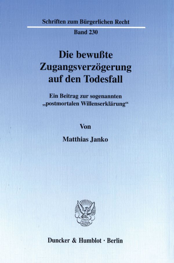 Dazu widmet er sich zunächst der historischen Entwicklung, die zur Schaffung des § 130 Abs. 2 BGB geführt hat, stellt danach den Stand von Rechtsprechung und Lehre dar und versucht schließlich, das Problem durch Auslegung der Norm selbst zu klären. Dabei zeigt sich, daß die lebzeitige Abgabe bei einer bis nach dem Tod zurückgehaltenen Willenserklärung zweifelhaft ist. Der Verfasser meint, eine empfangsbedürftige Willenserklärung sei so lange nicht objektiv abgegeben, wie sie der Erklärende selbst zurückhalte oder zurückhalten lasse. Außerdem fehle es bei »postmortalen Willenserklärungen« zu Lebzeiten des Erklärenden an dem subjektiven Element der Abgabe. Dieses bestehe in dem Willen, den ungehinderten Zugang der Erklärung zu ermöglichen (Abgabewille). Der Zugang »postmortaler Willenserklärungen« sei aber nur aufschiebend befristet gewollt, so daß jedenfalls vor Ablauf der Frist (Tod des Erklärenden) kein Abgabewille des Erklärenden vorliege.