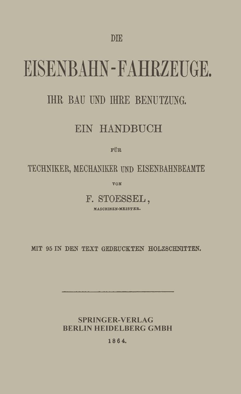 Die Publikation Die Eisenbahn-Fahrzeuge. Ihr bau und ihre Benutzung - Ein Handbuch für Techniker, Mechaniker und Eisenbahnbeamte von Franz Stoessel ist bei Springer, Springer Berlin erschienen. Die Publikation ist mit folgenden Schlagwörtern verschlagwortet: Eisenbahn, Fahrzeug, Mechanik, Mechaniker. Weitere Bücher, Themenseiten, Autoren und Verlage finden Sie hier: https://buch-findr.de/sitemap_index.xml . Auf Buch FindR finden Sie eine umfassendsten Bücher und Publikationlisten im Internet. Sie können die Bücher und Publikationen direkt bestellen. Ferner bieten wir ein umfassendes Verzeichnis aller Verlagsanschriften inkl. Email und Telefonnummer und Adressen. Die Publikation kostet in Deutschland 79.99 EUR und in Österreich 82.24 EUR Für Informationen zum Angebot von Buch FindR nehmen Sie gerne mit uns Kontakt auf!