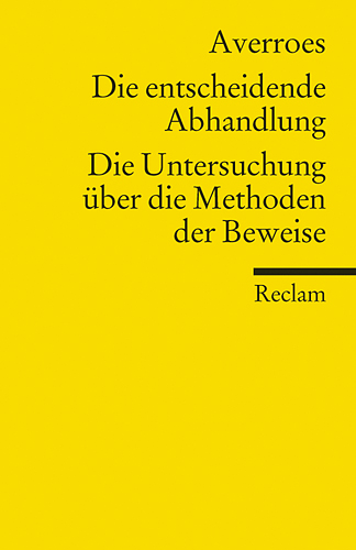 Der Band enthält zwei klassische Werke der arabischen Philosophie, die »Entscheidende Abhandlung« (mitsamt ihrem ergänzenden Zusatz) und die »Untersuchung über die Methoden der Beweise«, beide etwa 1178-80 entstanden. Ihr Verfasser Averroes bzw. Ibn Rushd erhielt den Beinamen »der große Kommentator«, weil er berühmt war für seine Aristoteles-Kommentare. In der arabischen Welt gilt er als konsequentester und zugleich letzter Vertreter der aristotelischen Schule, für die Aristoteles-Kenntnis des lateinischen Mittelalters ist er ein wesentliches Vermittlungsglied. Ein Zeilenkommentar und ein Nachwort geben in dieser Ausgabe alle nötigen Verständnishilfen.