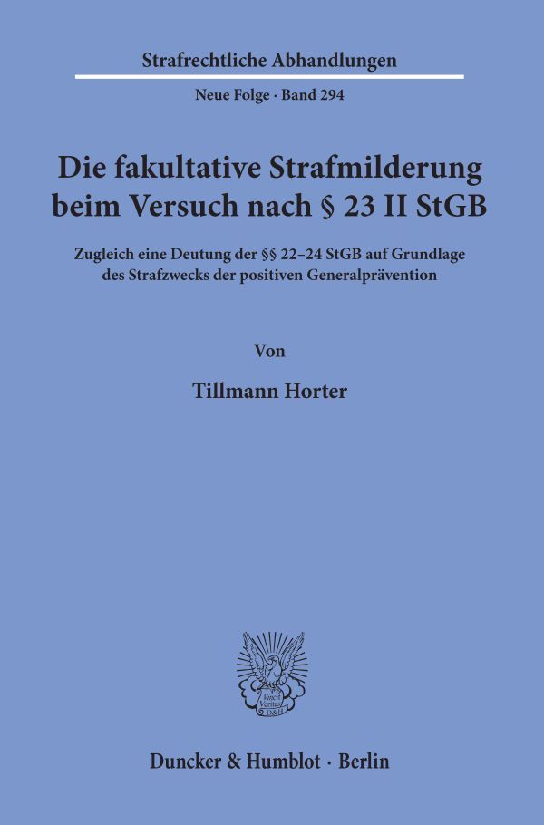 Die Frage, ob der Versuch einer Straftat milder zu bestrafen ist als die vollendete Tat, wird in der Strafrechtswissenschaft seit jeher kontrovers diskutiert. Das Strafgesetzbuch bezieht in § 23 II dazu dahingehend Stellung, dass die Strafe wegen des Ausbleibens der Vollendung milder bestraft werden kann. Ziel der Arbeit ist, Kriterien zu entwickeln, von denen der Gebrauch dieser Milderungsmöglichkeit abhängt. Tillmann Horter nimmt entgegen der vorherrschenden Auffassung an, dass die defizitäre Verwirklichung des objektiven Tatbestands als solche keine Strafmilderung legitimiert. Dies ist darauf zurückzuführen, dass das Ausbleiben der Verwirklichung objektiver Merkmale aus Tätersicht häufig einen bloßen Zufall darstellt, der dem Täter nicht zugutekommen darf. Eine Milderung wegen des Verbleibs der Tat im Versuchsstadium ist vielmehr nur dann geboten, wenn die defizitäre Verwirklichung des objektiven Tatbestands dem Täter (zumindest partiell) zuzurechnen ist.