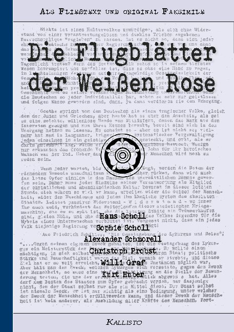 »Nichts ist eines Kulturvolkes unwürdiger, als sich ohne Widerstand von einer verantwortungslosen und dunklen Trieben ergebenen Herrscherclique ‚regieren‘ zu lassen. Ist es nicht so, dass sich jeder ehrliche Deutsche heute seiner Regierung schämt, und wer von uns ahnt das Ausmaß der Schmach, die über uns und unsere Kinder kommen wird, wenn einst der Schleier von unseren Augen gefallen ist und die grauenvollsten und jegliches Maß unendlich überschreitenden Verbrechen ans Tageslicht treten?« – Gleich dieser erste Satz des ersten Flugblattes der »Weißen Rose« fasst die alle Dimensionen sprengende Unmenschlichkeit des Nazi-Regimes, die Verdorbenheit des Volkes – und die Konsequenzen, die das alles für Generationen haben würde, so treffend zusammen, wie man es nirgendwo sonst lesen konnte. Sechs Flugblätter verschickten und verteilten die Mitglieder der Widerstandsgruppe »Weiße Rose«, Hans und Sophie Scholl, Alexander Schmorell, Christoph Probst, Willi Graf und Kurt Huber, und begaben sich dabei in Lebensgefahr. – Die hier abgedruckten Flugblätter sind ein einzigartiges Zeitdokument.