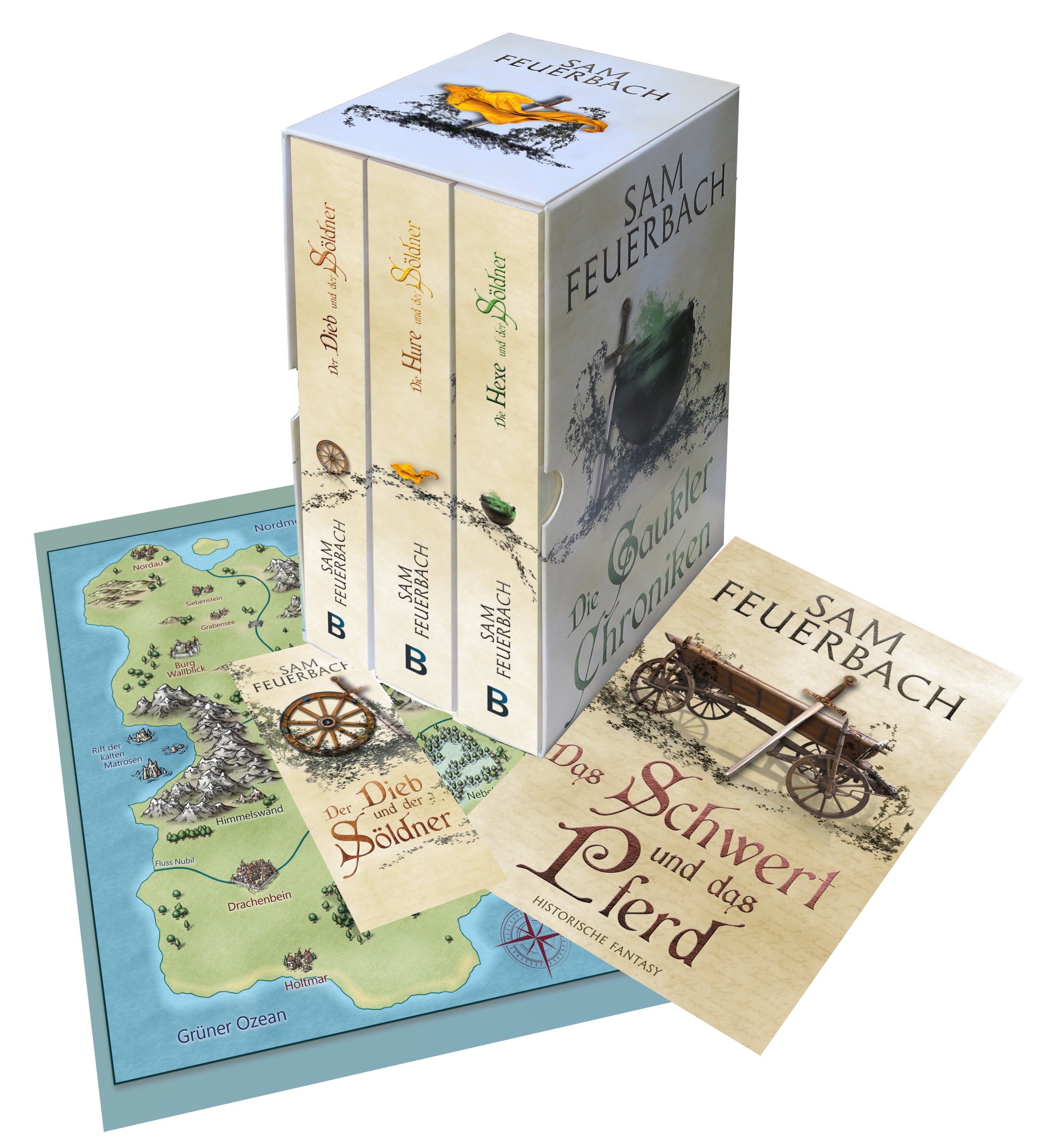 Die Bestseller-Saga als Komplettausgabe im exklusiven Schuber inklusive der Einstiegsepisode »Das Schwert und das Pferd«, A4-Landkarte und Lesezeichen.