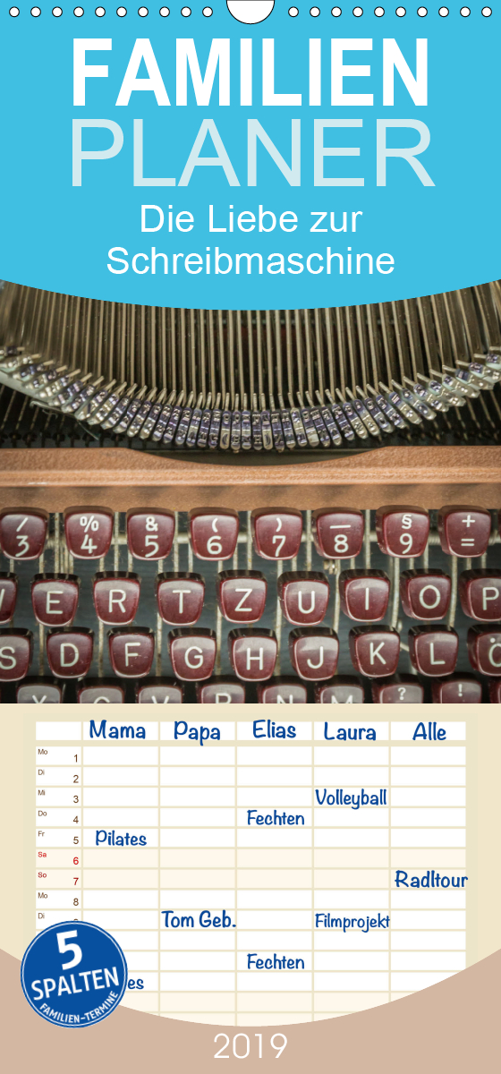 Die Liebe zur Schreibmaschine – Familienplaner hoch (Wandkalender 2019 , 21 cm x 45 cm, hoch)