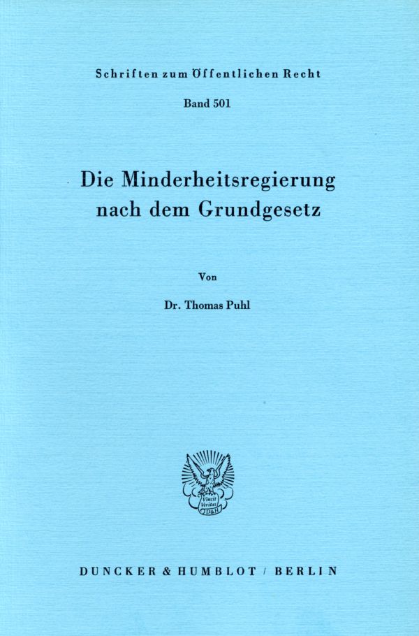 Die Publikation Die Minderheitsregierung nach dem Grundgesetz. von Thomas Puhl ist bei Duncker & Humblot erschienen. Die Publikation ist mit folgenden Schlagwörtern verschlagwortet: Minderheitsregierung, Staatsrecht. Weitere Bücher, Themenseiten, Autoren und Verlage finden Sie hier: https://buch-findr.de/sitemap_index.xml . Auf Buch FindR finden Sie eine umfassendsten Bücher und Publikationlisten im Internet. Sie können die Bücher und Publikationen direkt bestellen. Ferner bieten wir ein umfassendes Verzeichnis aller Verlagsanschriften inkl. Email und Telefonnummer und Adressen. Die Publikation kostet in Deutschland 74.9 EUR und in Österreich 77 EUR Für Informationen zum Angebot von Buch FindR nehmen Sie gerne mit uns Kontakt auf!