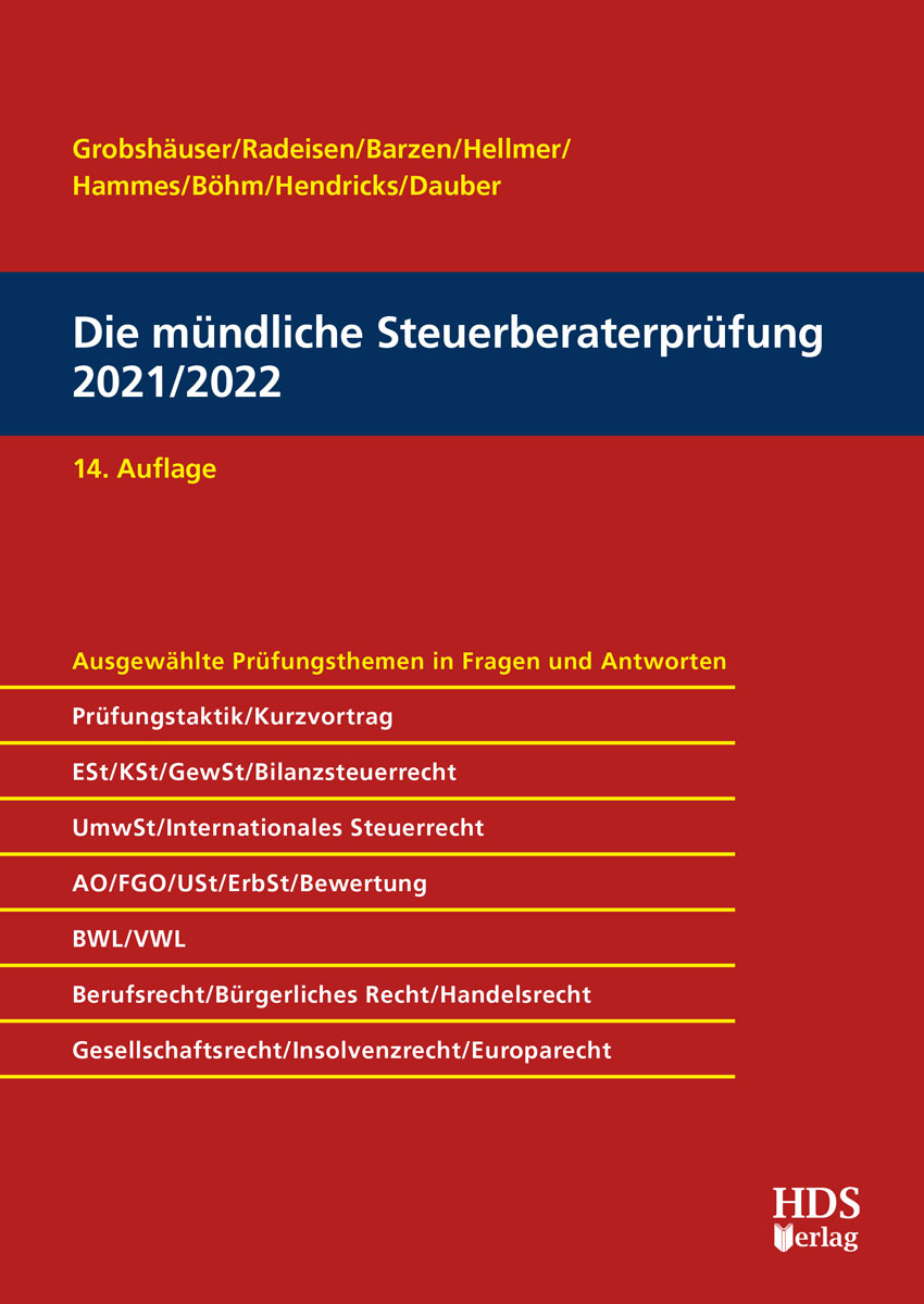 Dieses Werk eignet sich auch zur Vorbereitung auf die mündliche Prüfung in den steuerrechtlichen Studiengängen der Fachhochschulen und DualenHochschulen.