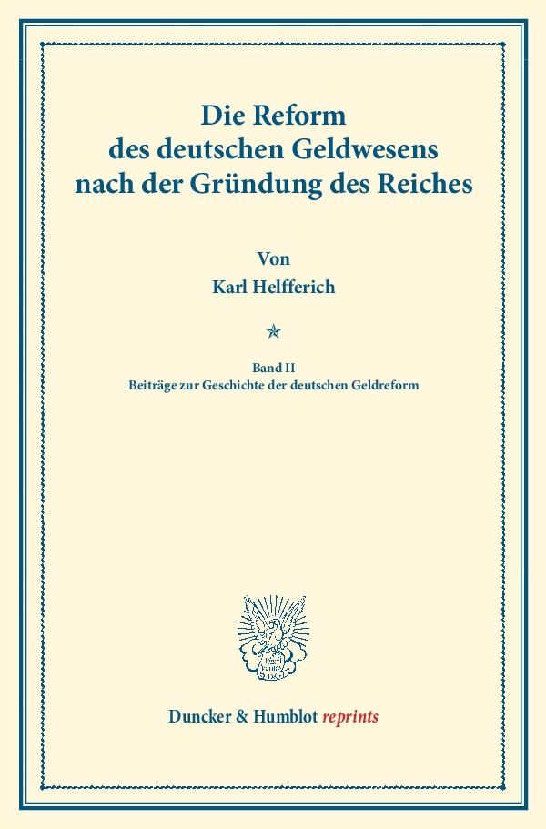 Im Rahmen des Projekts »Duncker & Humblot reprints« heben wir Schätze aus dem Programm der ersten rund 150 Jahre unserer Verlagsgeschichte, von der Gründung 1798 bis zum Ende des Zweiten Weltkriegs 1945. Lange vergriffene Klassiker und Fundstücke aus den Bereichen Rechts- und Staatswissenschaften, Wirtschafts- und Sozialwissenschaften, Geschichte, Philosophie und Literaturwissenschaft werden nach langer Zeit wieder verfügbar gemacht.