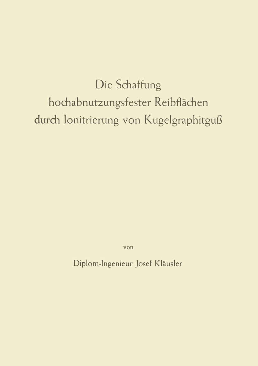 Die Schaffung hochabnutzungsfester Reibflächen durch Ionitrierung von Kugelgraphitguß online kaufen
