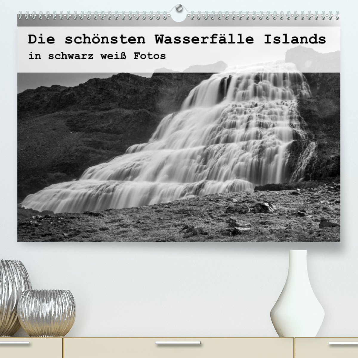 Die schönsten Wasserfälle Islands in schwarz weiß Fotos (Premium, hochwertiger DIN A2 Wandkalender 2022, Kunstdruck in Hochglanz)