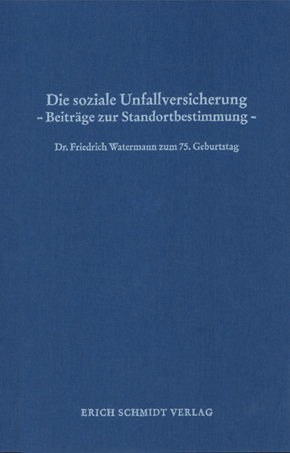 Diese Neuerscheinung ist Dr. Friedrich Watermann zum 75. Geburtstag gewidmet, der von 1971 bis 1986 Hauptgeschäftsführer des Hauptverbandes der gewerblichen Berufsgenossenschaften war. Dr. Watermann hat auch über seine Pensionierung hinaus wesentlich zur Entwicklung des Unfallversicherungsrechts beigetragen. Als Kommentator und Autor zahlreicher Veröffentlichungen wird der Jubilar in Fachkreisen sehr geschätzt. Das Buch ist in zwei Hauptabschnitte gegliedert. Der erste Teil befaßt sich mit Beiträgen zur Unfallversicherung. Schwerpunkte sind: Berufsgenossenschaftliche Prävention – Rückschau und Perspektive Finalität und Kausalität in der gesetzlichen Unfallversicherung Berufskrankheiten – die Achillesferse der Unfallversicherung. Der zweite Teil beinhaltet unter anderem folgende Beiträge zum Arbeits- u. Gesundheitsschutz: Die Arbeitsmedizin und die Berufsgenossenschaften Präventionsinstrumente der gesetzlichen Unfallversicherung Neue Ansätze der arbeitsmedizinischen Betreuung von Kleinbetrieben
