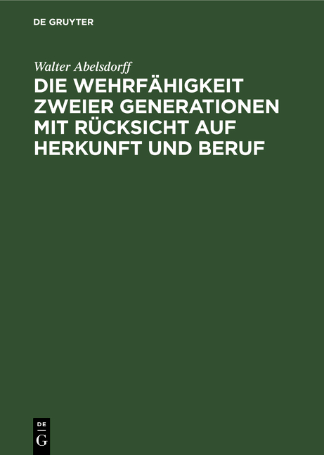 Die Wehrfähigkeit zweier Generationen mit Rücksicht auf Herkunft und Beruf online kaufen