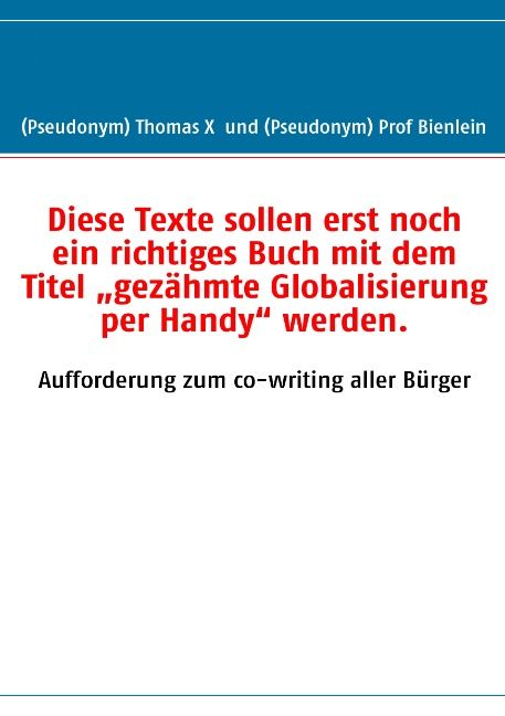 Diese Texte sollen erst noch ein richtiges Buch mit dem Titel „gezähmte Globalisierung per Handy“ werden.