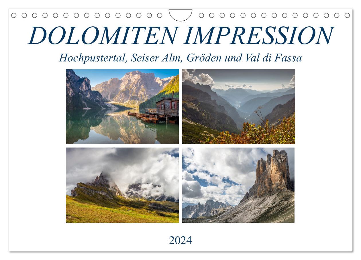 Dolomiten Impression, Hochpustertal, Seiser Alm, Gröden, Val di Fassa (Wandkalender 2024 DIN A4 quer), CALVENDO Monatskalender