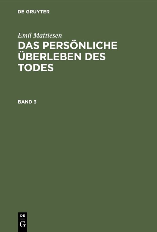 Emil Mattiesen: Das persönliche Überleben des Todes / Emil Mattiesen: Das persönliche Überleben des Todes. Band 3 online kaufen