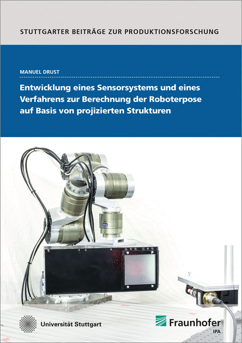 Die Genauigkeitssteigerung von Industrierobotern ist eine zentrale Aufgabe, um Robotersysteme auch für Produktionsprozesse mit hohen Genauigkeitsanforderungen, wie Entgraten oder Bohren, einzusetzen. Roboter sind in der Lage, Posen im Arbeitsraum des Roboters wiederholbar anzufahren. Jedoch ist das absolutgenaue Anfahren von Roboterposen bisher für viele Prozesse nicht ausreichend. Eine Möglichkeit, die Absolutgenauigkeit von Robotern zu verbessern, ist die Online-Korrektur der Roboterpose mit den Messwerten eines zusätzlichen optischen Sensorsystems. Allerdings erreichen herkömmliche Sensorsysteme kaum eine Marktdurchdringung aufgrund fehlender gemessener Freiheitsgrade, unzureichender Genauigkeit oder den eingeschränkten Möglichkeiten zur Integration am Robotersystem. Das im Rahmen dieser Dissertation entwickelte Messprinzip für ein gestaltetes Sensorsystem verwendet die Projektion einer Maßverkörperung in den Arbeitsraum des Roboters und benutzt diese als berührungslose, ortsfeste Referenz zur Bestimmung der Roboterpose. Der zentrale Beitrag dieser Arbeit ist die Formulierung einer Gesetzmäßigkeit und das daraus entwickelte Messverfahren zur Auswertung der Messungen durch Bildverarbeitung und zur Berechnung der Roboterpose und damit die Möglichkeit zur Genauigkeitssteigerung in der Robotik. Weiterführend untersucht die vorgestellte Arbeit durch Simulation die Auswirkung von Einflussgrößen, wie die Anzahl gemessener Projektionen oder das Rauschniveau der Messung, auf das Ergebnis. Das in der Simulation erprobte Messverfahren wird nach Umsetzung des Sensorsystems und der Integration am Robotersystem in experimentellen Anwendungen, insbesondere bei der Bewegung entlang von Linien und Kreisen in einem Messquader validiert. Das wesentliche Ergebnis ist die Verbesserung der erreichbaren Genauigkeit des Sensorsystems im Vergleich zum Referenzfall eines monokularen Sensorsystems um etwa 83,2 Prozent bei Bestimmung aller Freiheitsgrade der Pose. Zudem wurde experimentell bei translatorischen Bewegungen des Roboters entlang paralleler Prüfbahnen die translatorische Genauigkeit eines definierten Kriteriums von 0,087mm bei einer Unsicherheit von 0,048mm erzielt. Aus dem Beitrag dieser Arbeit entsteht die Möglichkeit, Sensorsysteme als Basis für die Entwicklung absolutgenauer Robotersysteme bereitzustellen und folglich bei komplexen und genauen Bearbeitungsaufgaben einzusetzen.