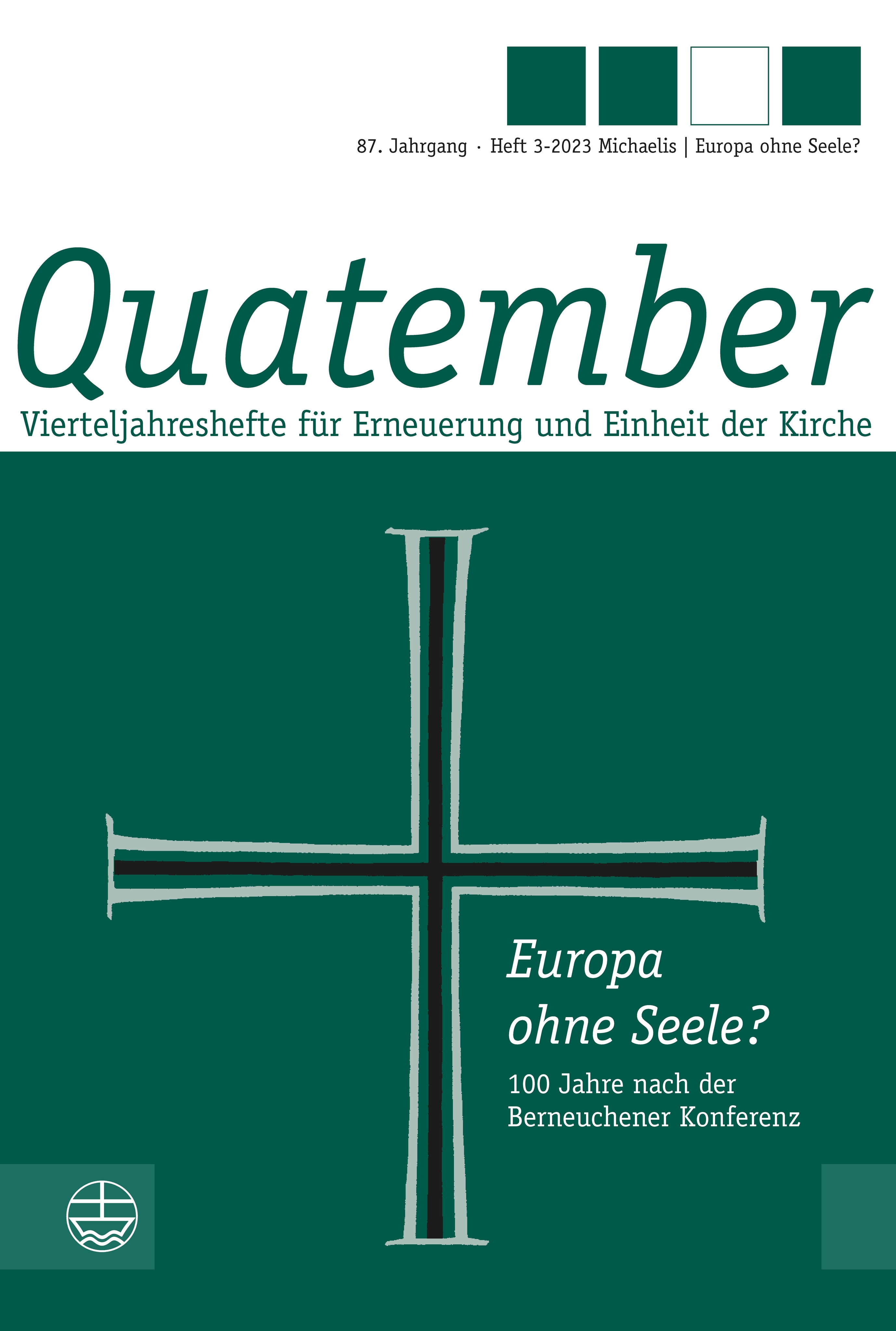 Vor 100 Jahren, an Pfingsten 2023, kam auf dem Rittergut Berneuchen, in der Altmark östlich der Oder gelegen, eine sehr unwahrscheinliche Gruppe von Menschen zusammen. Die Spannweite reichte vom deutschnationalen Abgeordneten des preußischen Landtags bis hin zum religiösen Sozialisten, von konservativen Lutheranern bis hin Anhängern liberaler Theologie. Viele derjenigen, die an der später so genannten ersten »Berneuchener Konferenz« teilnahmen, waren geprägt durch die Jugendbewegung. Alle waren sich darin einig, dass nach der Katastrophe des Weltkrieges eine tiefgehende kulturelle Erneuerung nötig sei, die ohne den Beitrag des Christentums und der Kirchen nicht denkbar sei. Unsere Gegenwart braucht in ähnlicher Weise eine geistige Erneuerung aus den Grundlagen Europas. Aber welchen Beitrag können Christentum und Kirchen, Spiritualität und Theologie dabei leisten, die Seele Europas neu zur Erfahrung zu bringen? Im Heft sollen die Vorträge einer im Berneuchener Haus Kloster Kirchberg zum Thema stattfindenden Tagung abgedruckt und um weitere Beiträge ergänzt werden.