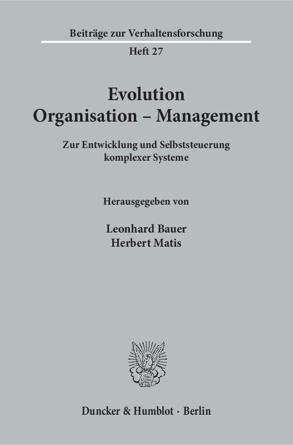 Die Publikation Evolution - Organisation - Management. - Zur Entwicklung und Selbststeuerung komplexer Systeme. von Leonhard Bauer, Herbert Matis ist bei Duncker & Humblot erschienen. Die Publikation ist mit folgenden Schlagwörtern verschlagwortet: Evolution, Management, Organisation. Weitere Bücher, Themenseiten, Autoren und Verlage finden Sie hier: https://buch-findr.de/sitemap_index.xml . Auf Buch FindR finden Sie eine umfassendsten Bücher und Publikationlisten im Internet. Sie können die Bücher und Publikationen direkt bestellen. Ferner bieten wir ein umfassendes Verzeichnis aller Verlagsanschriften inkl. Email und Telefonnummer und Adressen. Die Publikation kostet in Deutschland 49.9 EUR und in Österreich 51.3 EUR Für Informationen zum Angebot von Buch FindR nehmen Sie gerne mit uns Kontakt auf!