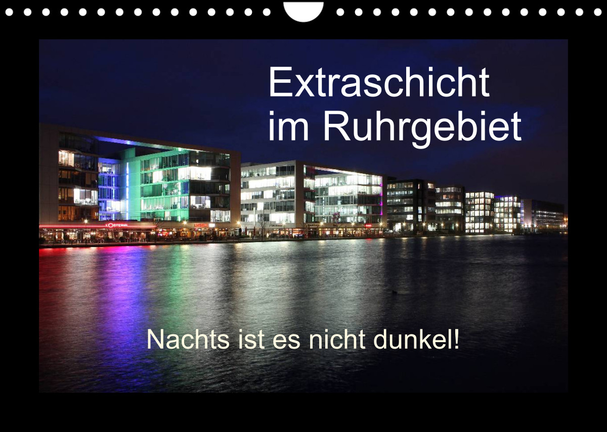 Das Ruhrgebiet ist in der Nacht bunt und hell beleuchtet. Tauchen Sie ein in die bunte und schillernde Welt des Ruhrgebiets. Orte wie der Innenhafen in Duisburg, Tiger & Turtle, das Geleucht in Moers, Slinky Springs to Fame in Oberhausen, die Halde Norddeutschland, das Klärwerk in Bottrop mit seinen blauen Eiern oder das Windrad im feuerroten Himmel. Dieser Kalender wird Ihre Wand verzaubern.