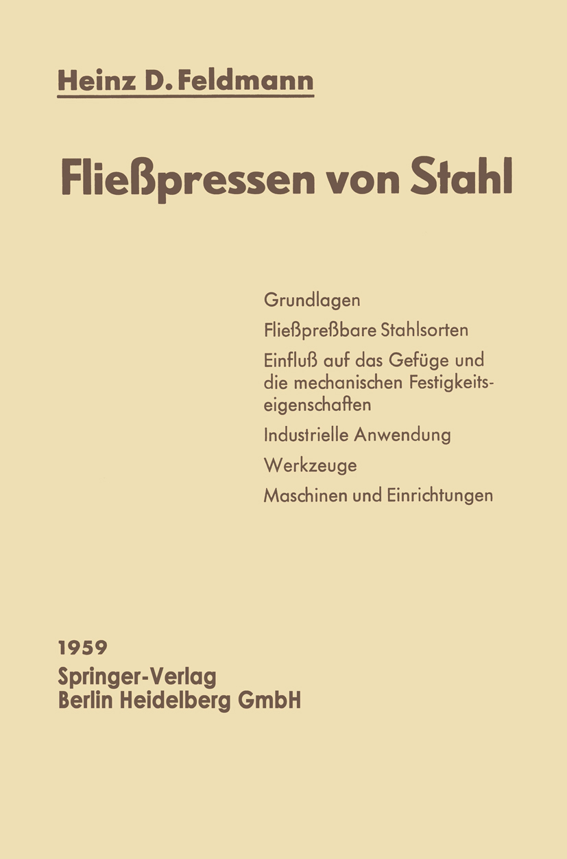 Das Fließpressen (früher Kaltspritzen genannt) ist schon seit etwa sechzig Jahren bekannt, während das Fließpressen von Stahl seit etwa zwanzig Jahren als Fertigungsverfahren angewendet wird. Es wurde bis 1945 vorwiegend nur für die Munitionsfertigung eingesetzt und galt als Geheimverfahren. Dieses erklärt, daß erst nach 1945 die ersten tech nischen Veröffentlichungen über dieses Fertigungsverfahren erschienen sind. Die Behandlung im technischen Schrifttum ist aber bisher un zureichend, und eine zusammenhängende Darstellung fehlt überhaupt. Das lag einerseits dar an, daß die praktische Entwicklung des Fließpreß verfahrans wesentlich schneller vor sich ging, als die Forschung folgen konnte, andererseits an der ständigen Weiterentwicklung und Erschlie ßung immer wieder neuer Anwendungsmöglichkeiten. Die Entwicklung des Fließpressens ist noch keinesfalls abgeschlossen, in vielen Dingen steht man erst am Anfang, aber es besteht doch ein gewisser derzeitiger Wissensstand. In diesem Buch wird erstmals in der Welt versucht, eine Gesamt darstellung über das Fließpressen von Stahl auf Grund der derzeitigen Erfahrungen und Erkenntnisse zu geben. Es wendet sich an den Stu dierenden als ein auf das Wesentliche beschränktes Lehrbuch und als Handbuch an den Konstrukteur und Betriebsmann. Es wurden bewußt die einfachsten Berechnungsgrundlagen für den Kraft- und Arbeits bedarf sowie vereinfachte Vorstellungen über die Umformvorgänge gewählt. Auch ist der Verfasser sich darüber im klaren, daß beim Er scheinen dieses Buches bereits wieder neue Erfahrungen und Erkennt nisse vorliegen können. Dieses Buch konnte nur geschrieben werden dank der großzügigen Unterstützung der Kabel-und Metallwerke Neumeyer AG, Nürnberg, deren einzigartige Erfahrungen überhaupt das Fundament für das Fließpressen von Stahl bilden.