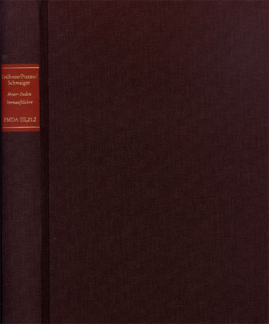 Meiers big ›Vernunftlehre‹ (Doctrine of Reason) is not a random source used by Kant in addition to numerous others. In fact it appears that Kant used Meier‹s big work as a compendium for his lectures to begin with and then switched over to Meier’s ›Auszug aus der Vernunftlehre‹ (Excerpts from the Doctrine of Reason) after a few semesters. When he switched, he wrote down numerous excerpts from the big ›Doctrine of Reason‹ in his personal interleaved copy of this compendium, as Erich Adickes demonstrated. In her study of ›Kants Logikvorlesungen als neuen Schlüssel zur Architektonik der Kritik der reinen Vernunft‹ (FMDA I,9) (Kant’s Lectures on Logic as a New Key to the Architectonics of the Critique of Pure Reason), Elfriede Conrad listed these meticulously. Thus this volume is an important supplement to the index volumes previously published concerning his works on logic. It shows precisely how Meier’s big ›Doctrine of Reason‹ left a lasting mark on Kant’s thinking.