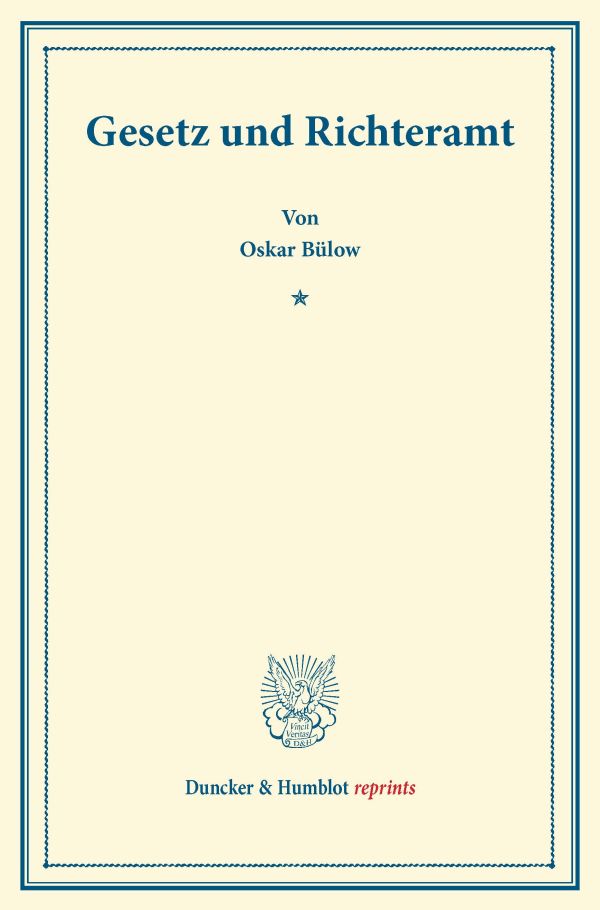 Das vorliegende Werk geht zurück auf zwei Vorträge, die Oskar Bülow 1885 hielt, u.a. seine Antrittsvorlesung in Leipzig. Er untersucht darin das Verhältnis von Richteramt und Gesetz. Denn: »Wer die Aufgabe und die Wirksamkeit des Richteramts in ihrer vollen großen Bedeutung, namentlich in ihrem Verhältnis zu Gesetzesrecht zu erfassen sucht, kann sich zahlreichen Wahrnehmungen nicht verschließen, welche darauf hindeuten, daß sich im Richteramt eine reiche rechtsordnende und rechtsschöpferische Kraft regt, die inmitten alles Gesetzesrechts erhalten geblieben ist und nie, auch nicht durch die vollständigste und vollkommenste Gesetzgebung wird vertilgt werden können.« (S. 2)