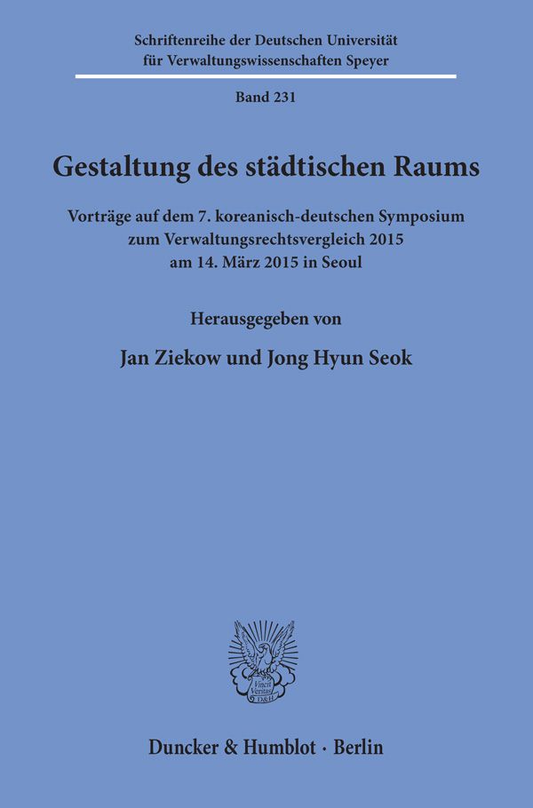 Der vorliegende Band fasst die Beiträge zusammen, die im Rahmen des 7. deutsch-koreanischen Symposiums zum Verwaltungsrechtsvergleich 2015 vorgetragen wurden. Das Symposium, das am 14. März 2015 in Speyer stattfand, hatte zum Ziel, Fragen der Gestaltung des städtischen Raumes vergleichend für beide Länder zu analysieren und zu diskutieren. Die wissenschaftliche Leitung der Veranstaltung lag bei Univ.-Prof. Dr. Jan Ziekow, Deutsches Forschungsinstitut für öffentliche Verwaltung, Speyer, und Prof. Dr. Dr. Jong Hyun Seok, Dankook Universität.