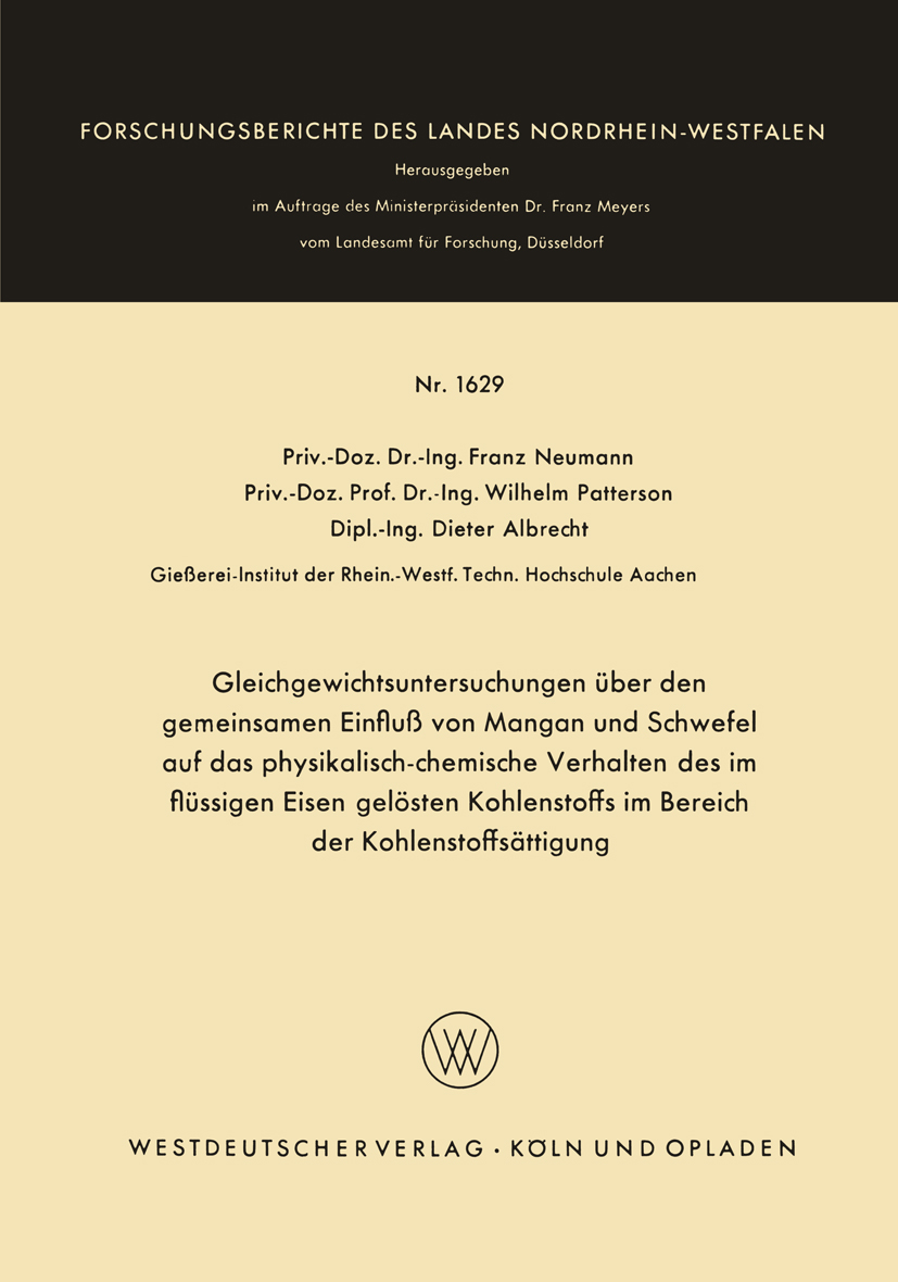 Gleichgewichtsuntersuchungen über den gemeinsamen Einfluß von Mangan und Schwefel auf das physikalisch-chemische Verhalten des im flüssigen Eisen gelösten Kohlenstoffs im Bereich der Kohlenstoffsättigung online kaufen