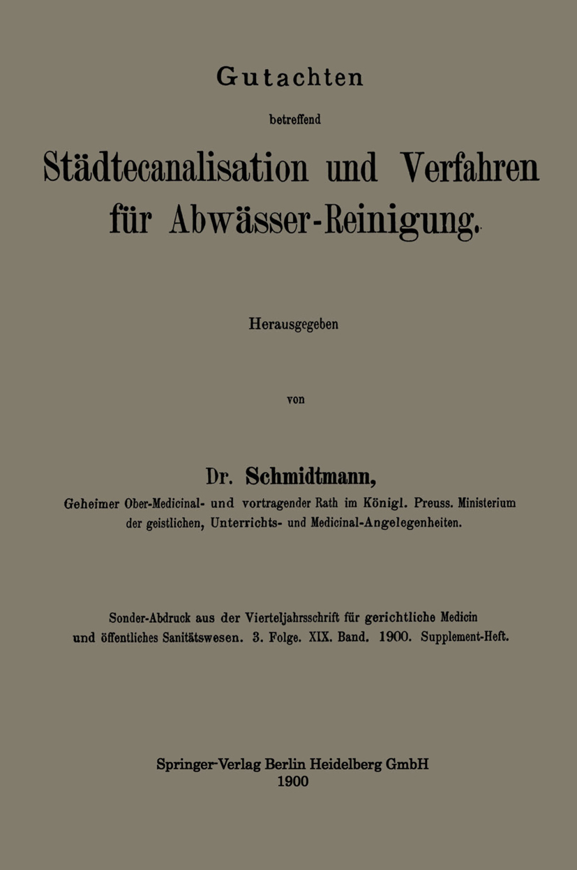 Die Publikation Gutachten betreffend Städtecanalisation und Verfahren für Abwässer-Reinigung von Adolf Louis Schmidtmann ist bei Springer Berlin erschienen. Die Publikation ist mit folgenden Schlagwörtern verschlagwortet: Gutachten, Reinigung, Verfahren, water quality and water pollution. Weitere Bücher, Themenseiten, Autoren und Verlage finden Sie hier: https://buch-findr.de/sitemap_index.xml . Auf Buch FindR finden Sie eine umfassendsten Bücher und Publikationlisten im Internet. Sie können die Bücher und Publikationen direkt bestellen. Ferner bieten wir ein umfassendes Verzeichnis aller Verlagsanschriften inkl. Email und Telefonnummer und Adressen. Die Publikation kostet in Deutschland 42.99 EUR und in Österreich 42.99 EUR Für Informationen zum Angebot von Buch FindR nehmen Sie gerne mit uns Kontakt auf!