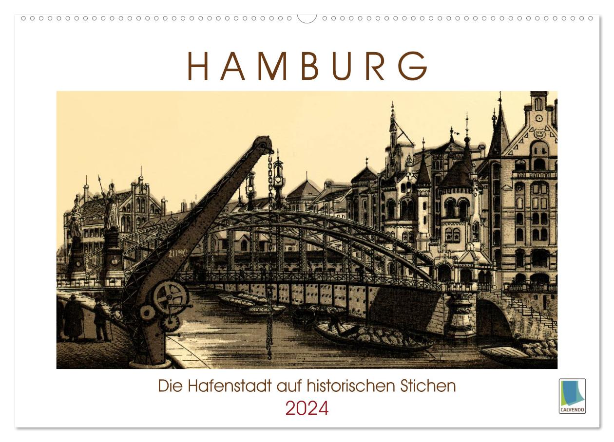 Hamburg: Die Hafenstadt auf historischen Stichen (Wandkalender 2024 DIN A2 quer), CALVENDO Monatskalender