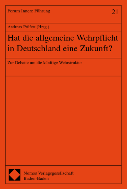 Die Publikation Hat die allgemeine Wehrpflicht in Deutschland eine Zukunft? - Zur Debatte um die künftige Wehrstruktur von Andreas Prüfert ist bei Nomos erschienen. Die Publikation ist mit folgenden Schlagwörtern verschlagwortet: Militärforschung, Politik, Theorie der Kriegsführung und Militärwissenschaft. Weitere Bücher, Themenseiten, Autoren und Verlage finden Sie hier: https://buch-findr.de/sitemap_index.xml . Auf Buch FindR finden Sie eine umfassendsten Bücher und Publikationlisten im Internet. Sie können die Bücher und Publikationen direkt bestellen. Ferner bieten wir ein umfassendes Verzeichnis aller Verlagsanschriften inkl. Email und Telefonnummer und Adressen. Die Publikation kostet in Deutschland 18 EUR und in Österreich 18.5 EUR Für Informationen zum Angebot von Buch FindR nehmen Sie gerne mit uns Kontakt auf!