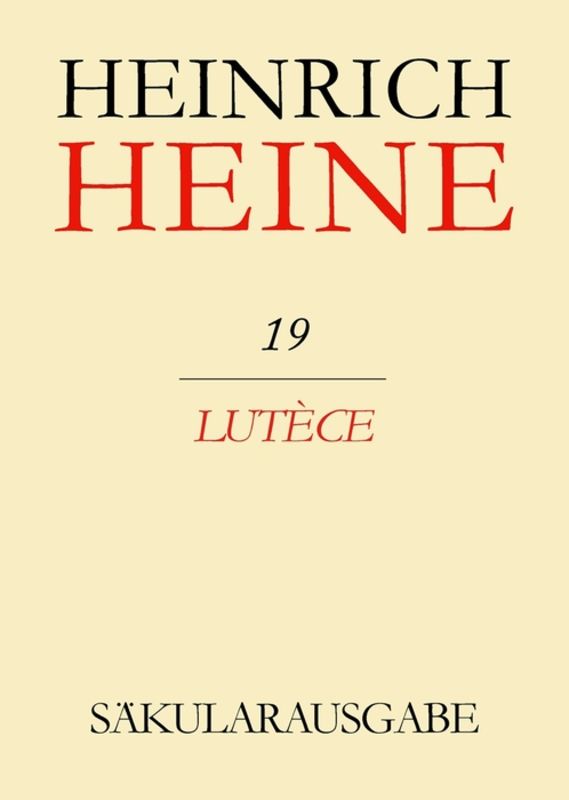 Für die Heine-Säkularausgabe musste eine Entscheidung bezüglich der chronologischen Anordnung getroffen werden. Gewählt wurde eine Anordnung, die zusammengehörige Werkkomplexe, zum Beispiel die Prosateile der „Reisebilder“ oder die „Lutezia“, als selbständige Bandeinheiten begreift. Ähnlich wie Heine selbst in der Ausgabe seiner französischsprachigen Werke bestimmte, werden in der Säkularausgabe gleichzeitig entstandene Texte nach inhaltlicher Übereinstimmung zusammengefast, so das sich eine leicht zu überschauende Anordnung des Gesamtwerkes ergibt. Band 18 enthält das Werk „Lutece“.