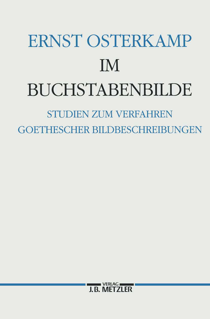 Die Publikation Im Buchstabenbilde - Studien zum Verfahren Goethescher Bildbeschreibungen von Ernst Osterkamp ist bei J.B. Metzler, Part of Springer Nature - Springer-Verlag GmbH erschienen. Die Publikation ist mit folgenden Schlagwörtern verschlagwortet: Bilder, Buchstabe, Goethe, Johann Wolfgang. Weitere Bücher, Themenseiten, Autoren und Verlage finden Sie hier: https://buch-findr.de/sitemap_index.xml . Auf Buch FindR finden Sie eine umfassendsten Bücher und Publikationlisten im Internet. Sie können die Bücher und Publikationen direkt bestellen. Ferner bieten wir ein umfassendes Verzeichnis aller Verlagsanschriften inkl. Email und Telefonnummer und Adressen. Die Publikation kostet in Deutschland 69.9 EUR und in Österreich 71.86 EUR Für Informationen zum Angebot von Buch FindR nehmen Sie gerne mit uns Kontakt auf!