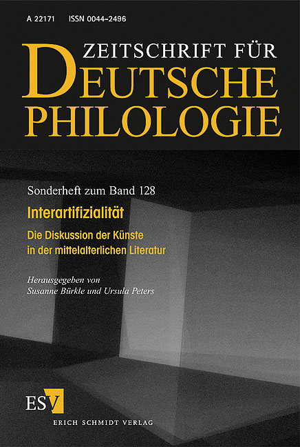 Unter dem Begriff der Interartifizialität versammeln sich Beiträge von Mediävisten, die sich den Diskursen und Konzepten von ‚Kunst’ und dem weiten Feld der ‚Künste’/artes der Vormoderne widmen, wie sie sich insbesondere in den mittelalterlichen Literaturen präsentieren. In der je verschiedenen Auffächerung ganz unterschiedlicher Künste im Medium der Literatur zeigt sich eine Tendenz zur Korrelation und Konfrontation, zur Abgleichung und Verhandlung ihrer jeweiligen Vermögen und Kriterien. Interartifizialität soll in erster Linie solche literaturimmanenten Kunst-Kunst-Relationen oder Interferenzen der Künste in mittelalterlichen Texten begrifflich fassen.