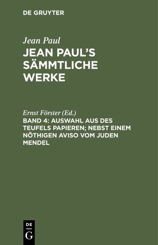 Jean Paul: Jean Paul’s Sämmtliche Werke / Auswahl aus des Teufels Papieren; nebst einem nöthigen Aviso vom Juden Mendel