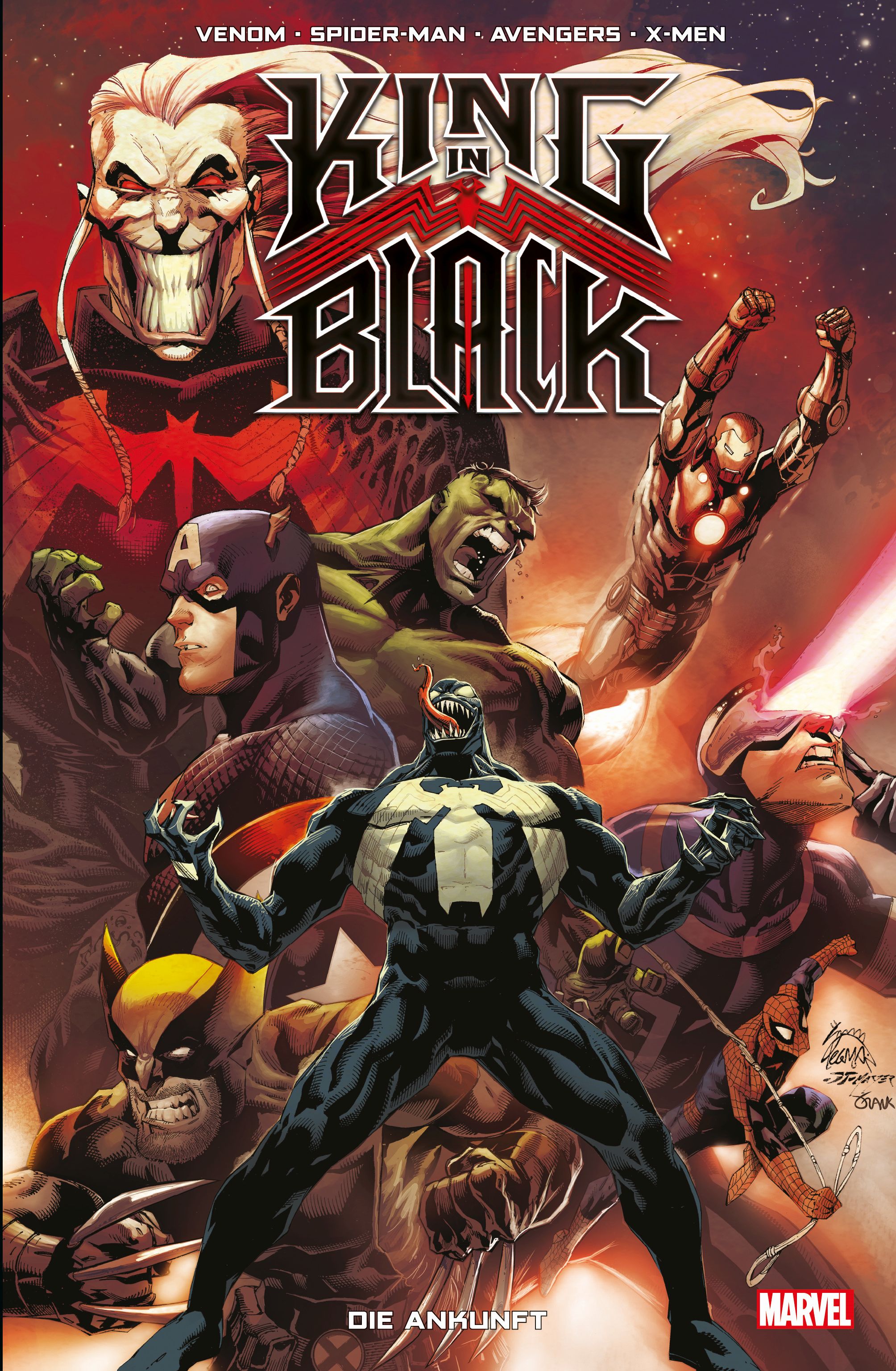 Der erste Band des spektakulären Events King in Black, inszeniert von Donny Cates (VENOM), Ryan Stegman (SPIDER-MAN), Al Ewing (BRUCE BANNER: HULK), Salvador Larroca (IRON MAN), Jason Aaron (AVENGERS) und anderen.